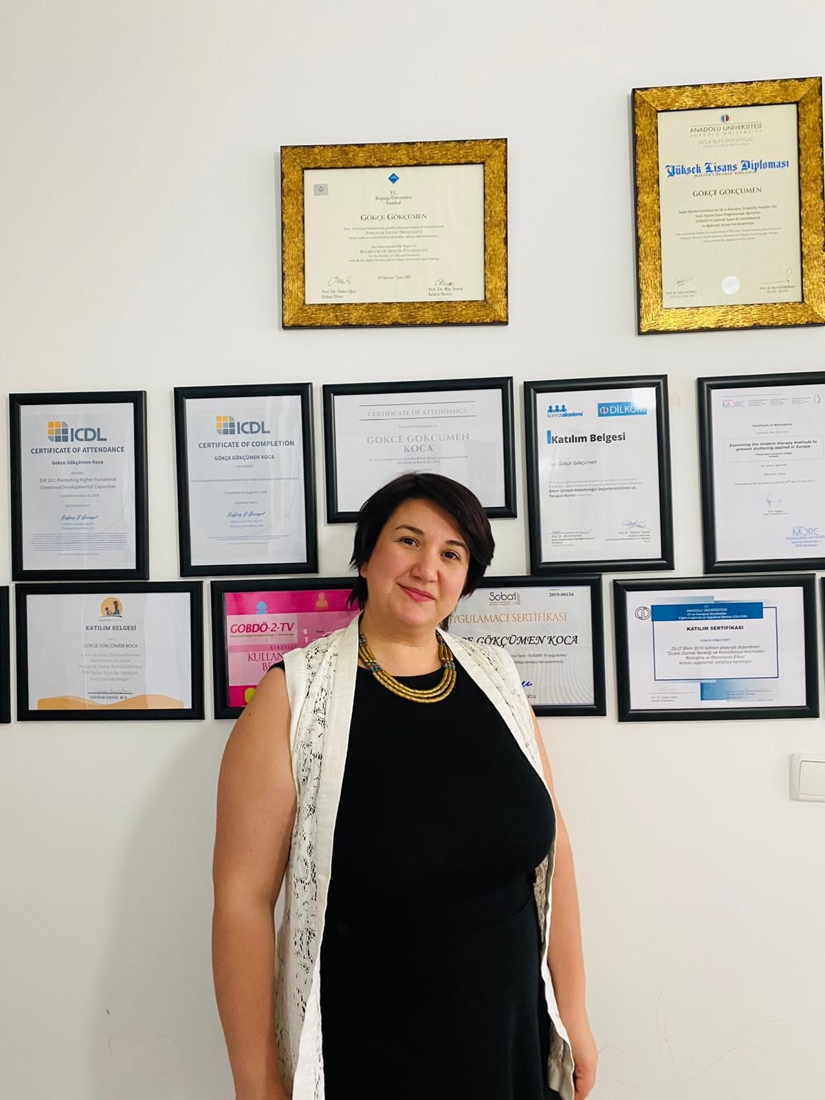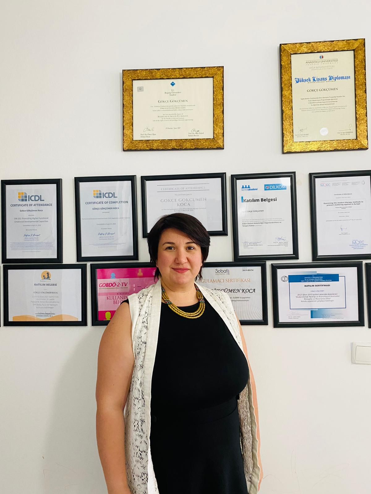 2018 yılından bu yana DIR Floortime eğitim ve supervizyonlarına katılmaktadır. DIR Floortime Certificate of Proficiency (202) eğitimini tamamlamış ülkemizdeki sayılı terapistlerden biridir. Alanda 2008 yılından bu yana çalışmakta olan Gökçe Gökçümen Koca evli ve iki çocuk annesidir.
